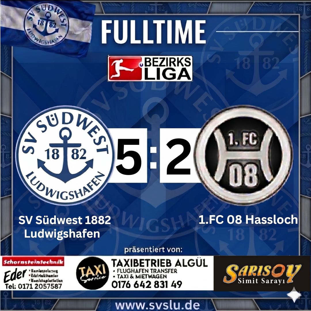 Der SV Südwest Ludwigshafen wurde seiner Favoritenrolle gerecht und besiegte den 1. FC 08 Hassloch vor rund 150 Zuschauern mit 5:2.