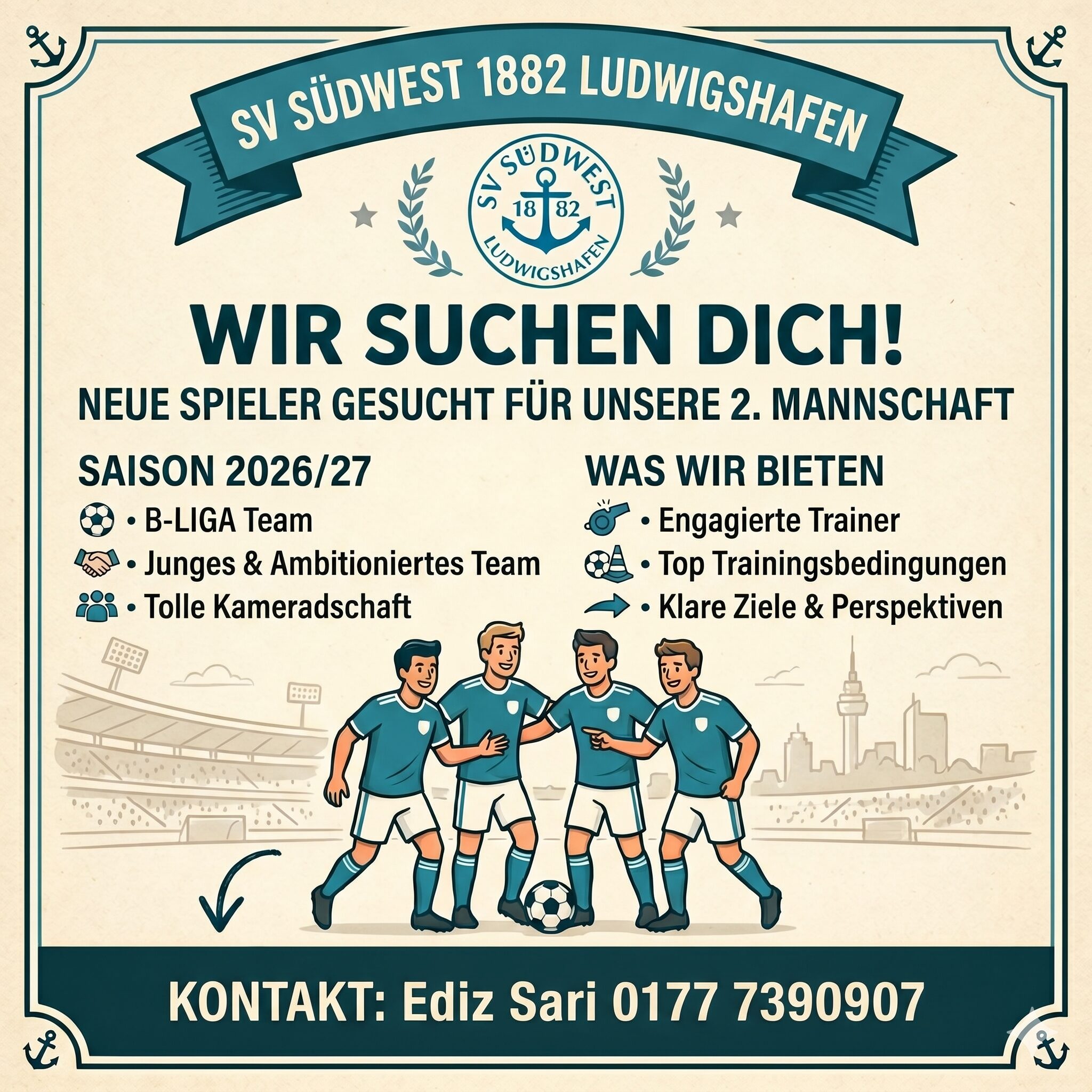 Beim SV Südwest Ludwigshafen erwarten dich ein tolles Umfeld, viele Entwicklungsmöglichkeiten und jede Menge Potenzial, gemeinsam etwas aufzubauen und zu bewegen.
