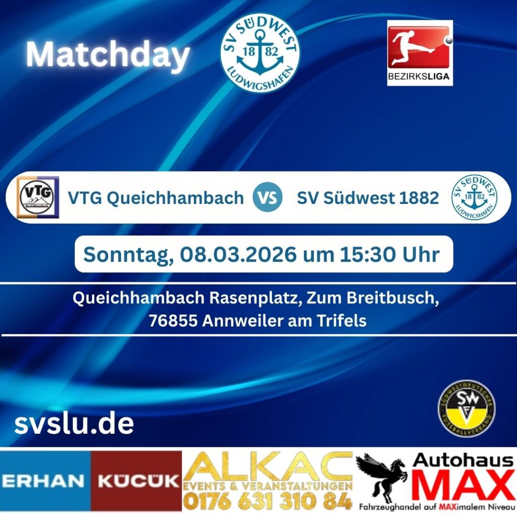 Am Sonntag, den 08.03.2026, ist der SV Südwest Ludwigshafen zu Gast beim heimstarken VTG Queichhambach. Die Queichhambacher haben von neun Heimspielen lediglich eines verloren und stellen damit den nächsten schweren Prüfstein für die Schützlinge von Trainer Ediz Sari dar.Im Hinspiel konnten die Blau-Weißen auf eigenem Platz einen überzeugenden 4:1-Erfolg feiern. Dennoch ist allen Beteiligten bewusst, […]