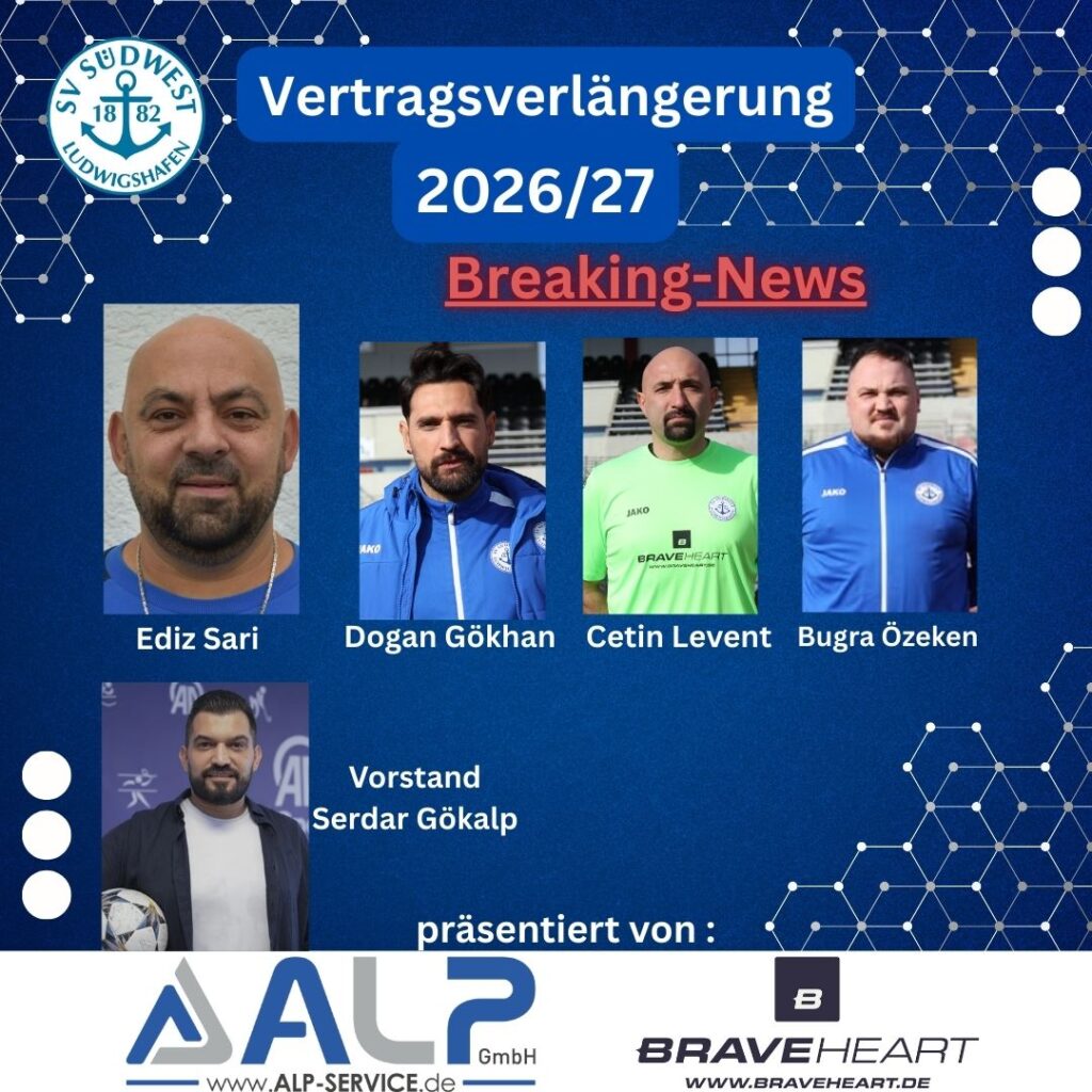 Positive Signale beim SV SüdwestBeim SV Südwest Ludwigshafen bewegt sich weiterhin vieles in die richtige Richtung. Trainer und Fußballabteilungsleiter Ediz Sari hat seinen Vertrag auch für die kommende Saison 2026/27 verlängert. Ausschlaggebend für seine Zusage waren vor allem der starke Zusammenhalt innerhalb der Mannschaft sowie die Kontinuität im Trainer- und Betreuerstab.Für Ediz Sari waren dies […]
