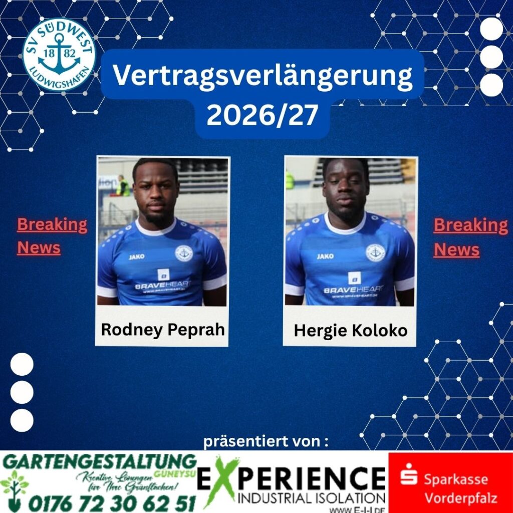 Und wieder eine gute Nachricht beim SV Südwest Ludwigshafen:Die beiden Leistungsträger Rodney Peprah und Hergie Koloko haben ihre Verträge verlängert und werden auch in der kommenden Saison das Trikot des SV Südwest tragen. Mit ihrer sportlichen Qualität, ihrem Einsatzwillen und ihrer Erfahrung sind beide wichtige Säulen der Mannschaft und tragen maßgeblich zur positiven Entwicklung des […]